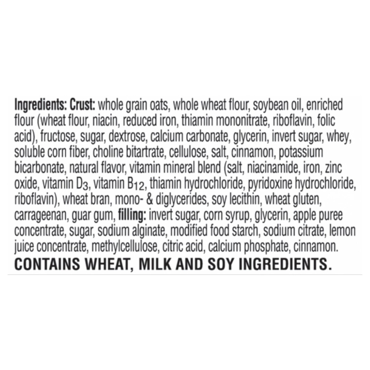 Crust: Whole Grain Oats, Whole Wheat Flour, Soybean Oil, Enriched Flour (Wheat Flour, Niacin, Reduced Iron, Thiamin Mononitrate, Riboflavin, Folic Acid), Fructose, Sugar, Dextrose, Calcium Carbonate, …