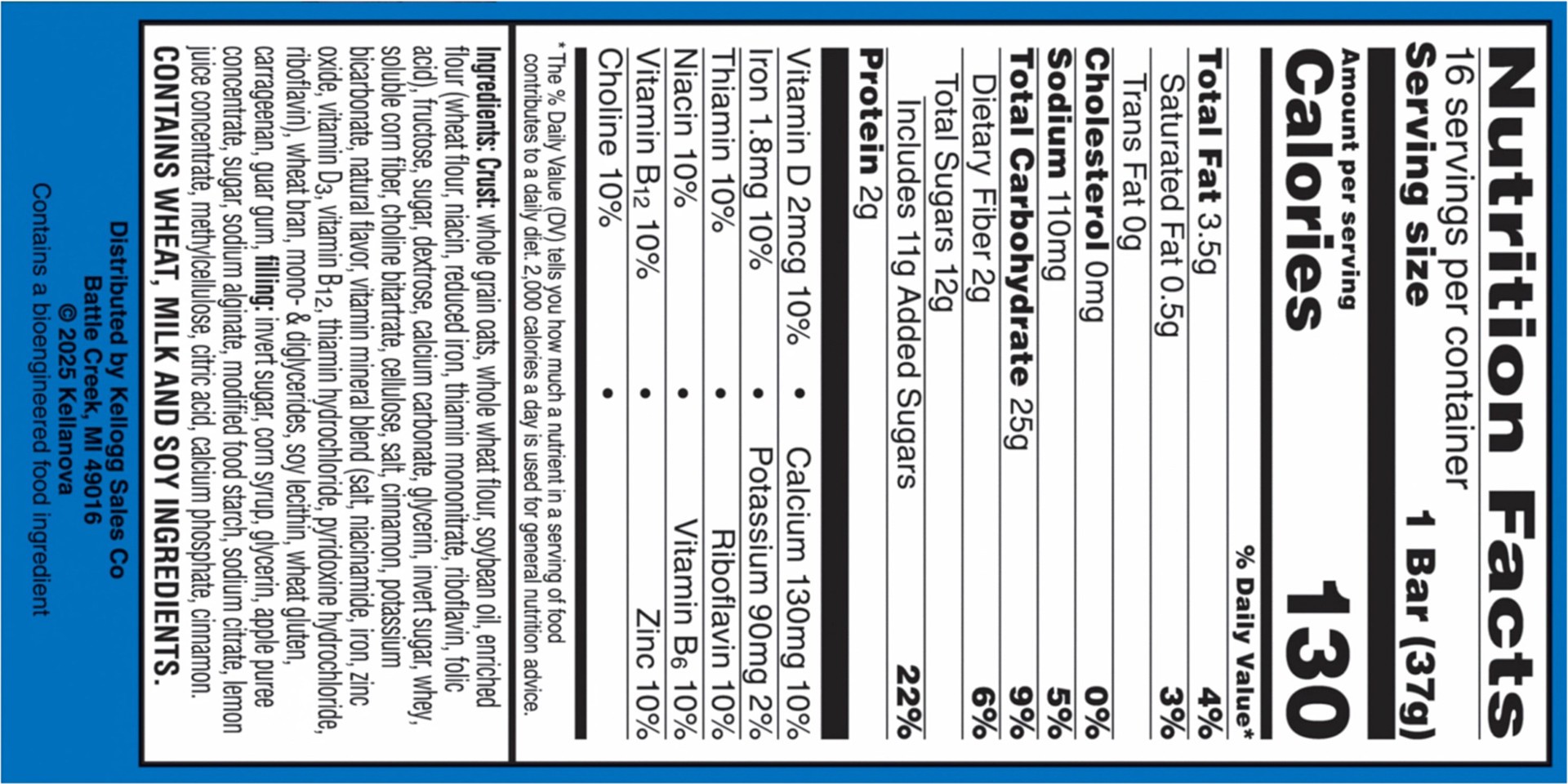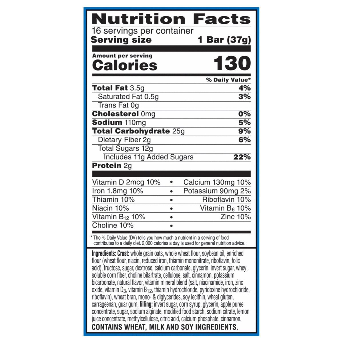 Ingredients: Crust: Whole Grain Oats, Whole Wheat Flour, Soybean Oil, Enriched Flour (Wheat Flour, Niacin, Reduced Iron, Thiamin Mononitrate, Riboflavin, Folic Acid), Fructose, Sugar, Dextrose, Calciu…