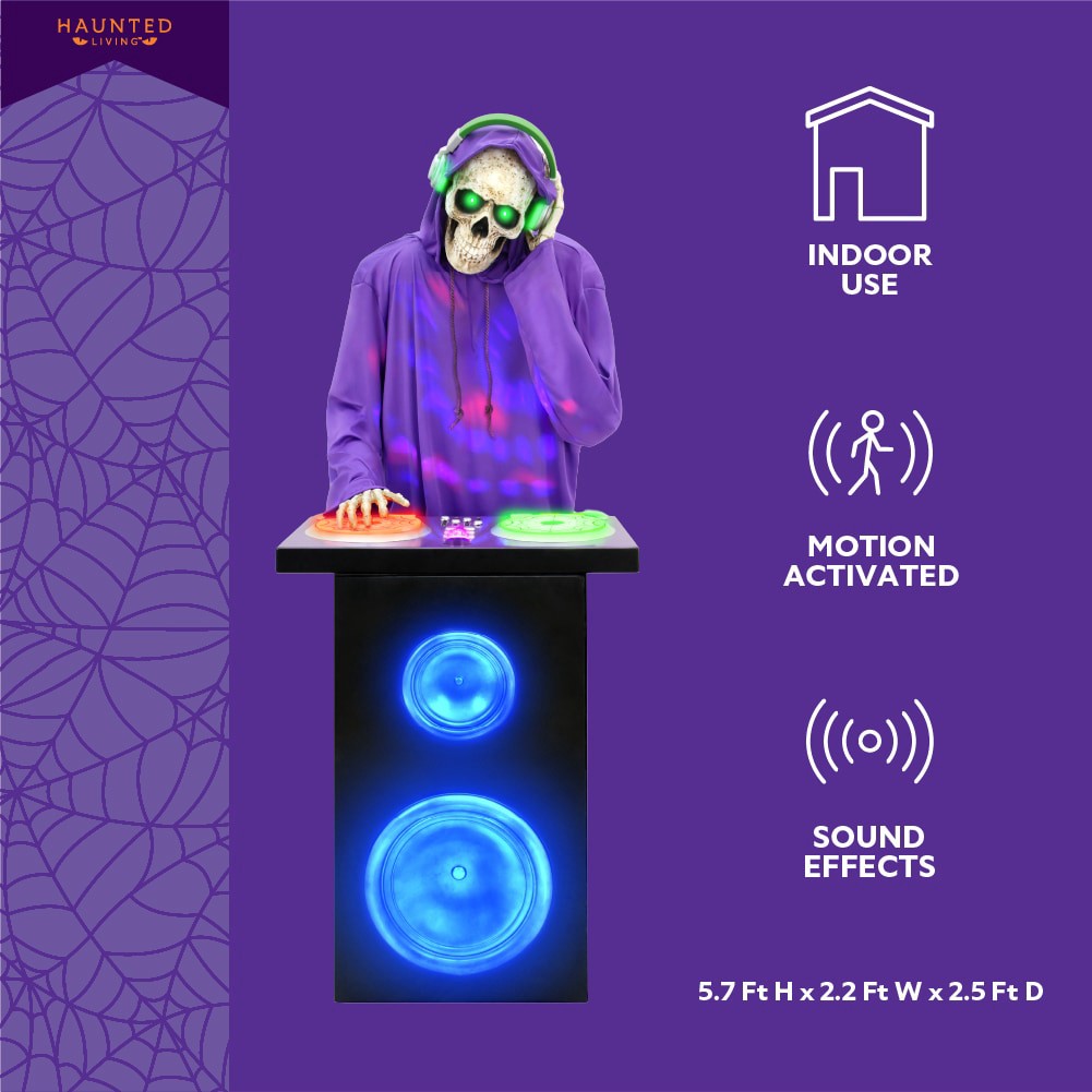 Let's get this party STARTLED with the life-sized, sound and motion activated 5.7-FT ANIMATED BLUETOOTH® SKELETON DJ that syncs with any Bluetooth® device to deliver a realistic DJ performance—spinnin…