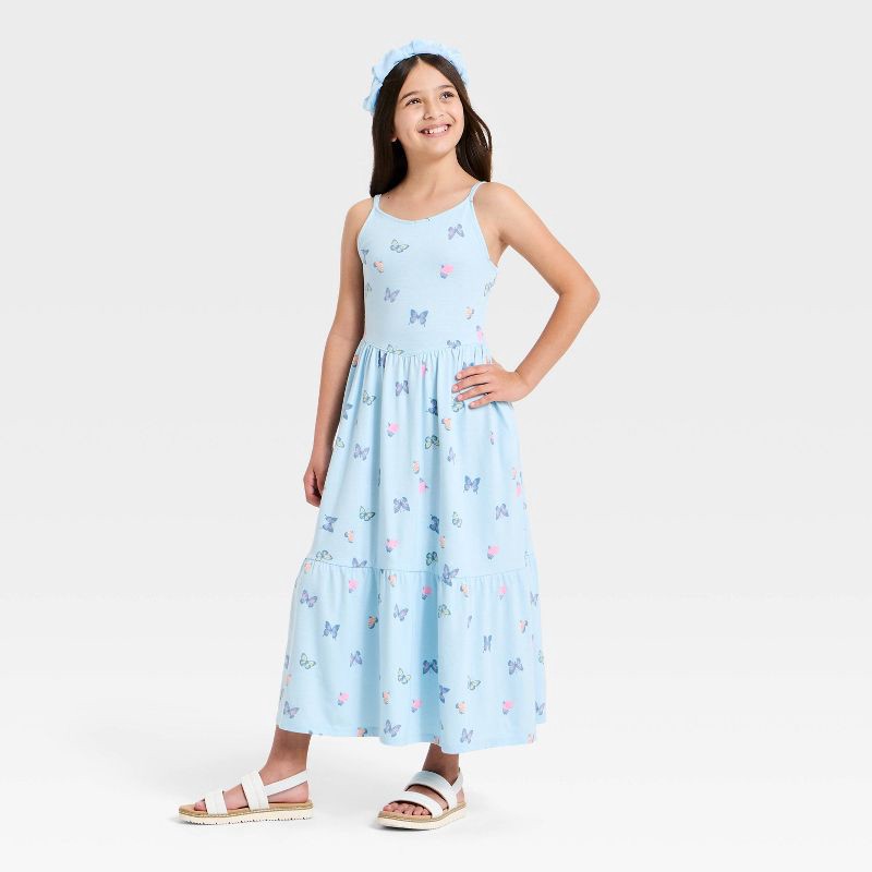 Bring a playful look to their everyday wardrobe with this Printed Maxi Dress from Cat & Jack™. This sleeveless maxi dress is crafted from a fabric blend of recycled polyester and cotton for breathable…
