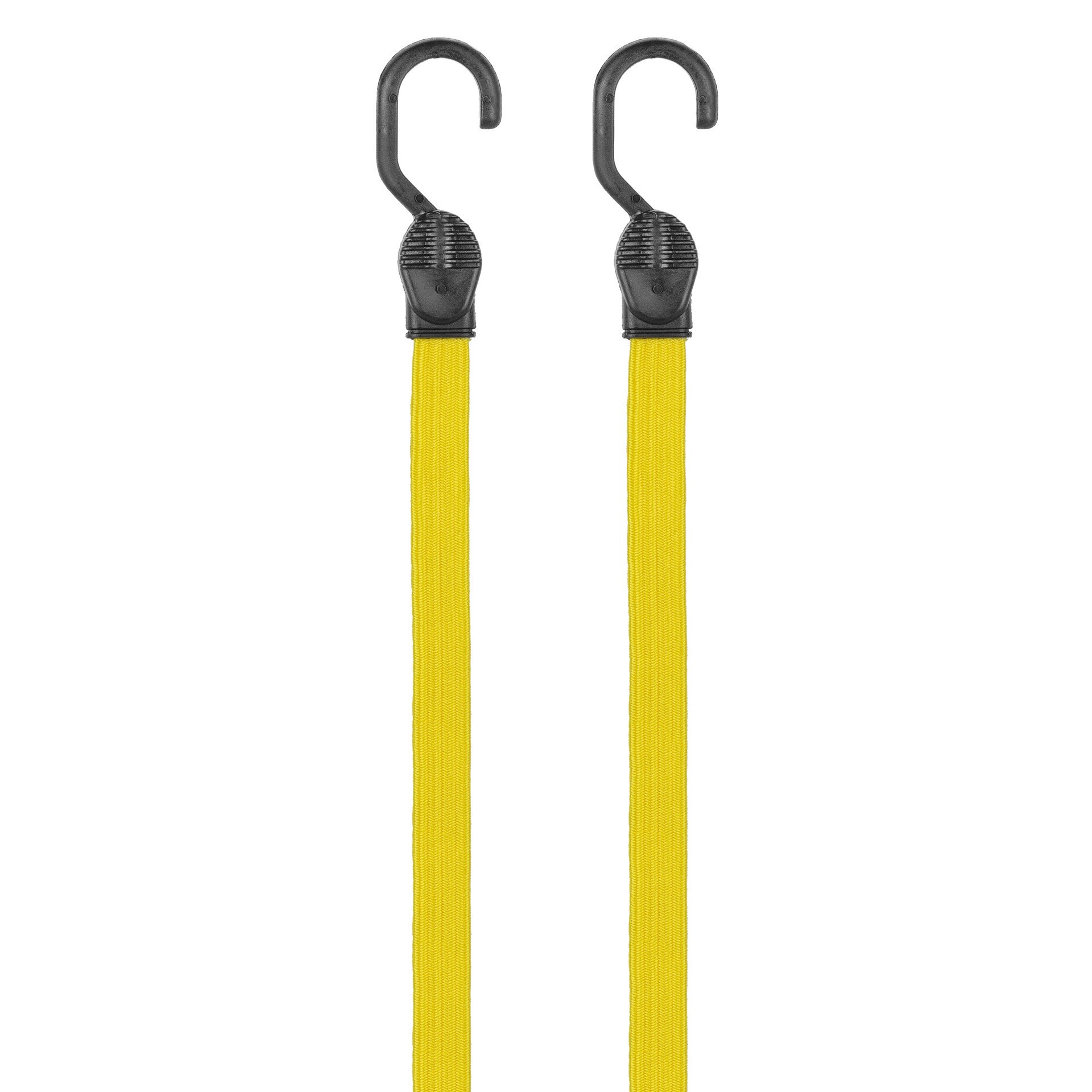 48 Flat Strap Bungee Bulk 2 Pk, Convenient flat strap design distributes load to reduce slipping or digging into surface, Coated steel core hooks wont lose shape, No metal exposed - wont scratch.