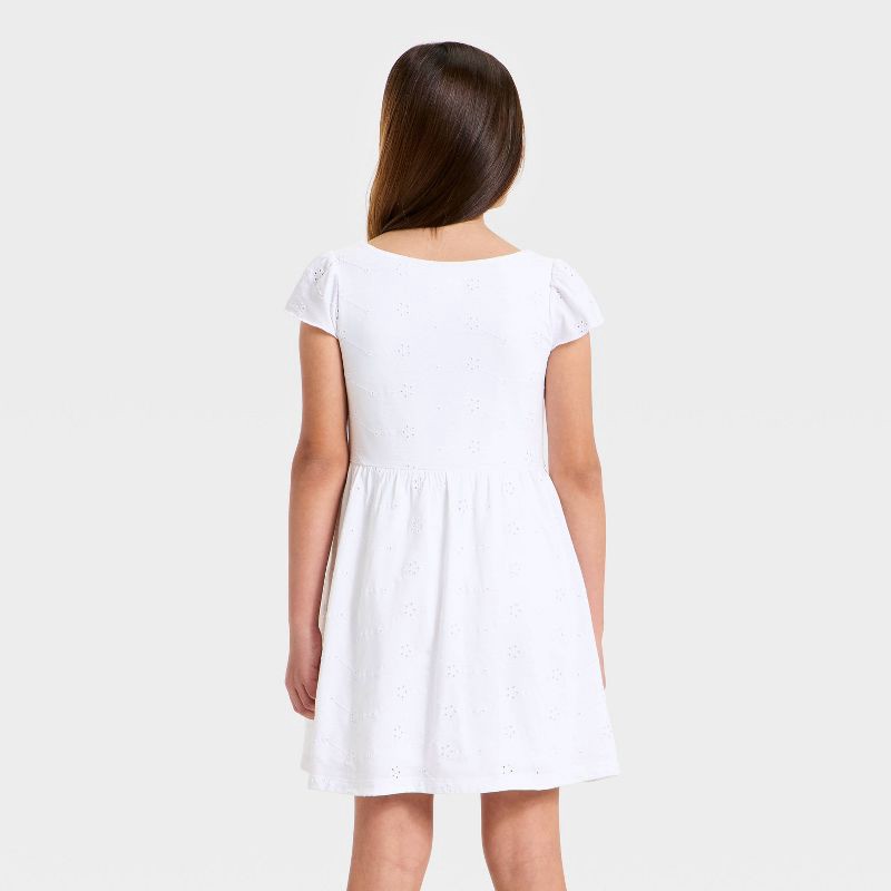 Girls' Short Sleeve Knit Eyelet Dress - Cat & Jack™ White XL