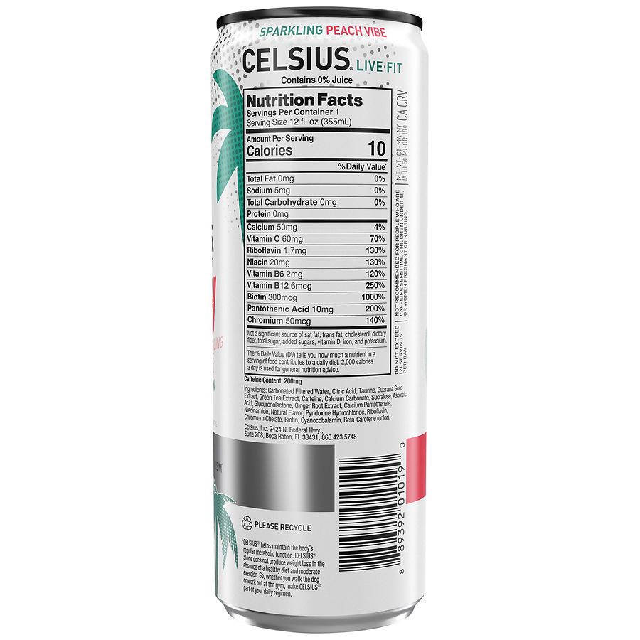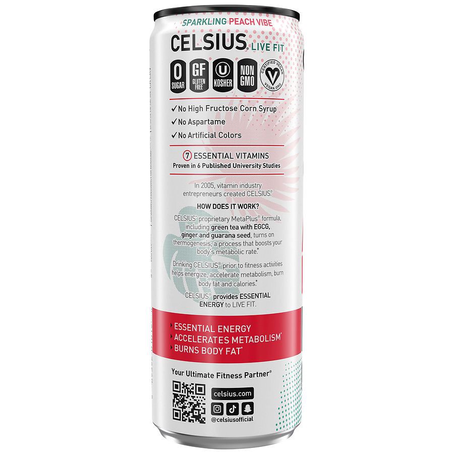 CELSIUS Sparkling Peach Vibe Functional Energy Drink - 12 fl oz Single Can
