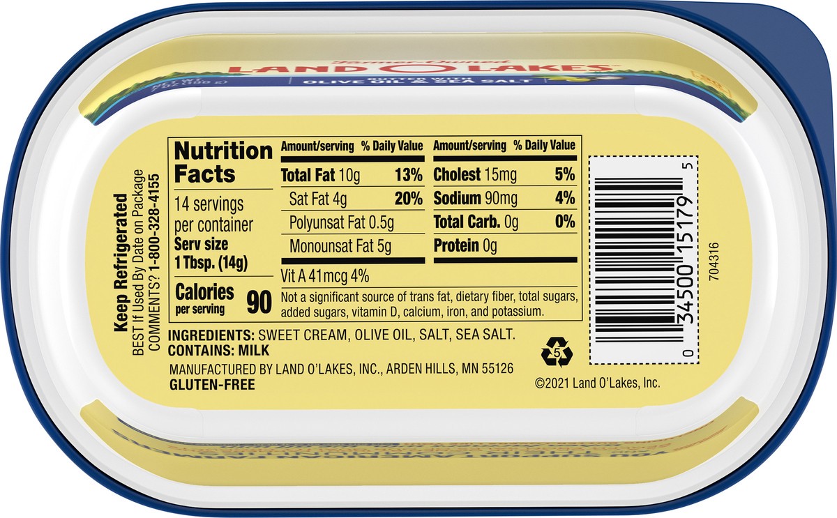 Land O Lakes Butter with Olive Oil and Sea Salt is made with quality ingredients and gives you the taste you love. Treat your taste buds to the richness of butter, with the goodness of olive oil. It p…