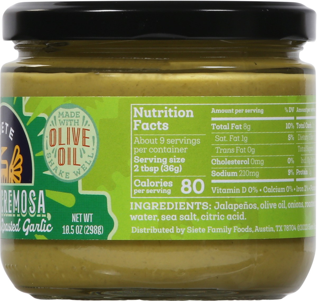 Jalapenos, Olive Oil, Onions, Roasted Garlic, Water, Sea Salt, Citric Acid.