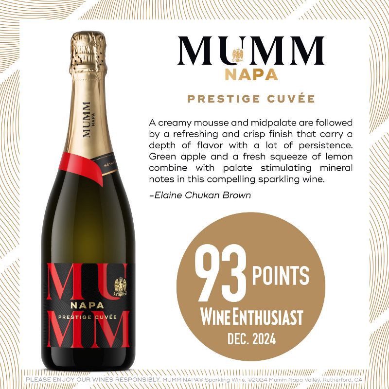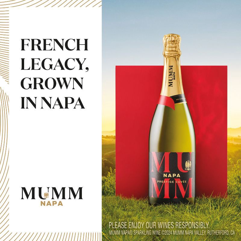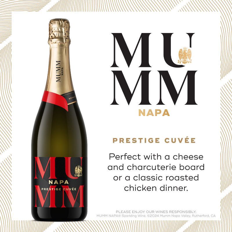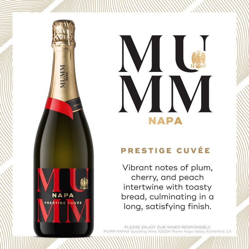 - INCLUDES: One 750 mL bottle of Mumm Napa Blanc de Blancs Sparkling Wine; 12.5% ABV. Enjoy and drink responsibly
