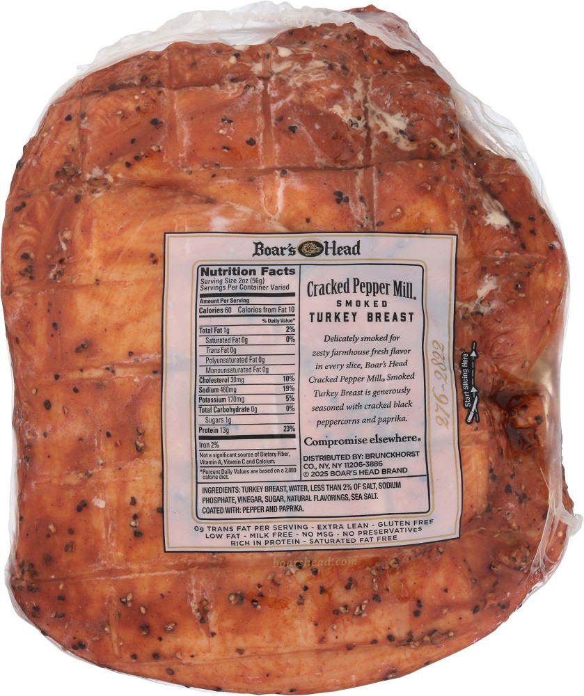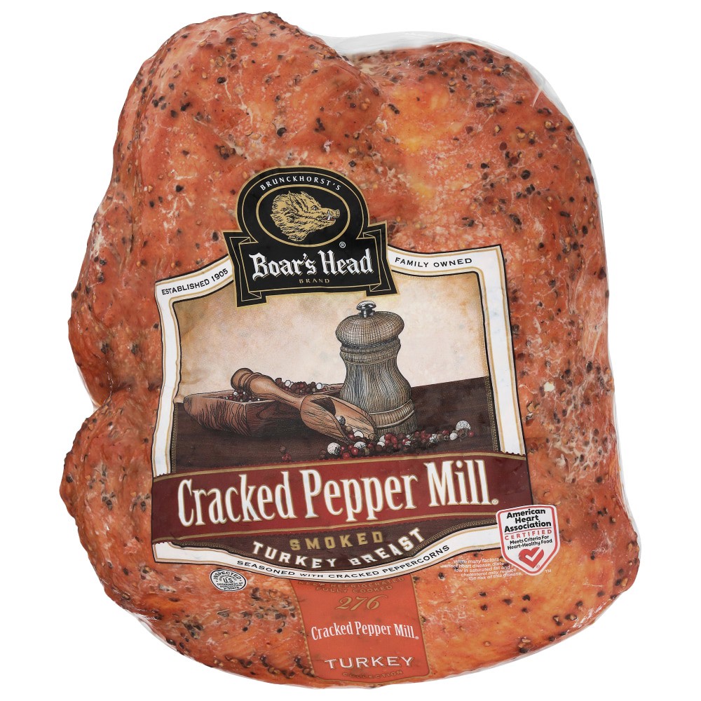Boar's Head® Cracked Pepper Mill™ Smoked Turkey Breast is generously seasoned with fragrant cracked black peppercorns and rich paprika then gently smoked to lock in all the rich flavors. The result is…