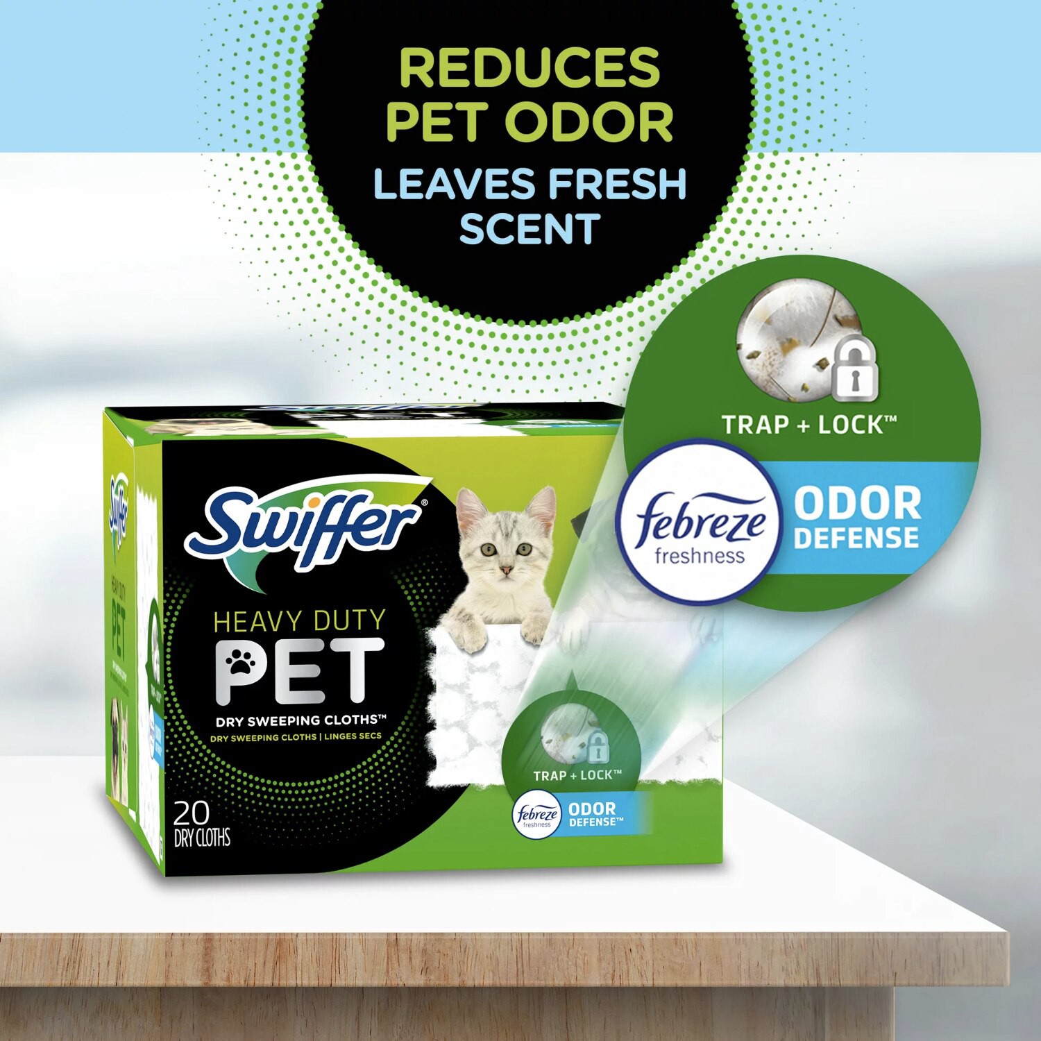 Swiffer Sweeper Heavy Duty Pet Dry cloths are super thick with fluffy 3D fibers that clean everywhere, even deep in grooves, to trap and lock 2X* dirt, dust and pet hair. Yep, shed happens… but Sweepe…