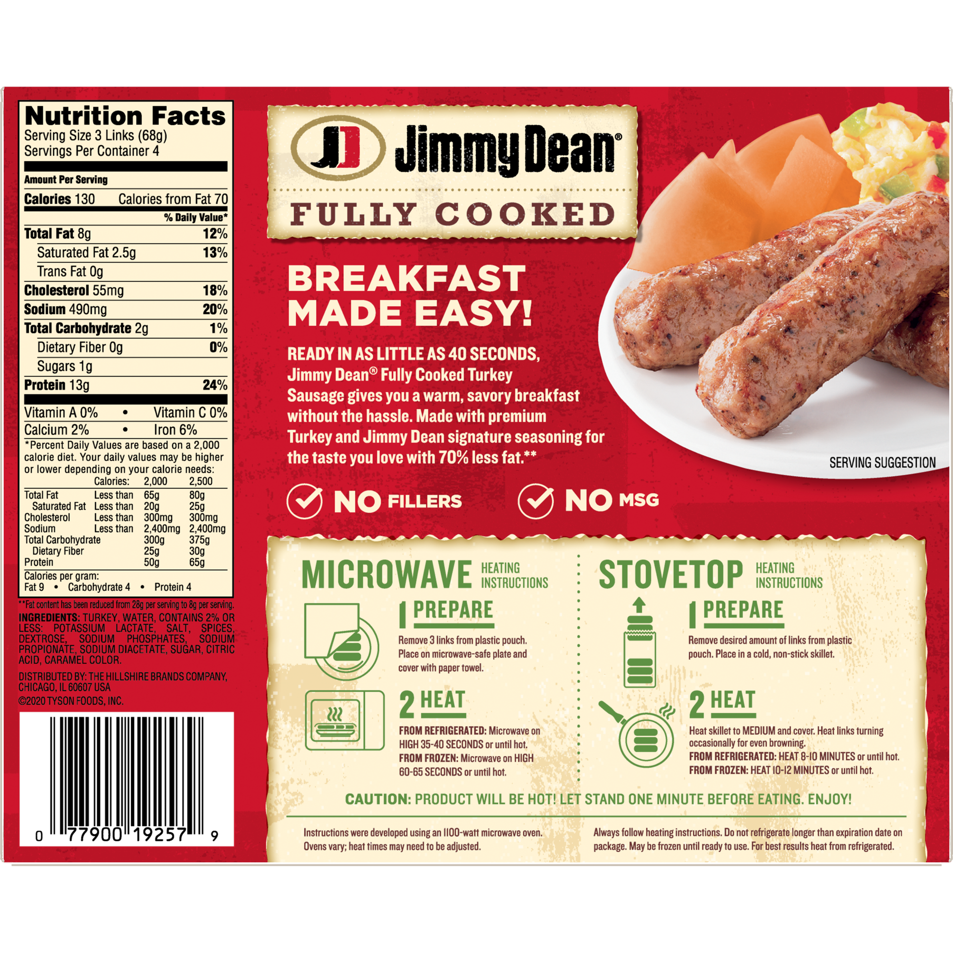 Jimmy Dean Fully Cooked Breakfast Turkey Sausage Links are made with premium turkey and seasoned to perfection with our signature blend of spices. These savory cooked sausage links have 13 grams of pr…