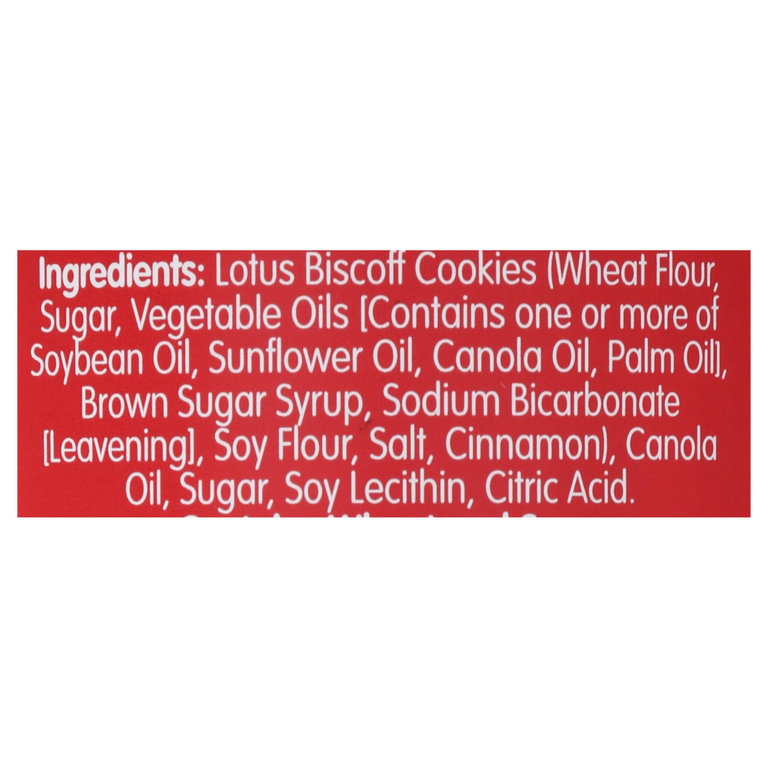 Biscoff Cookies (Wheat Flour, Sugar, Vegetable Oils [Contains One or More of Soybean Oil, Sunflower Oil, Canola Oil, Palm Oil), Brown Sugar Syrup, Sodium Bicarbonate [Leavening], Soy Flour, Salt, Cinn…