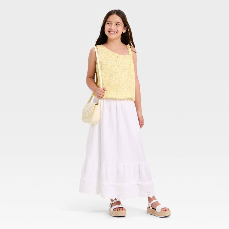 Girls' Knotted Strap Asymmetrical Floral Top - Cat & Jack™ Pale Yellow L