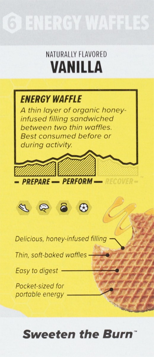 Includes 6 individually wrapped waffles. Naturally flavored. USDA Organic. Certified Organic by Ecocert Canada 91305. Non-GMO. Sports nutrition for every nutrition. Prepare. Perform. Recover. Sweeten …