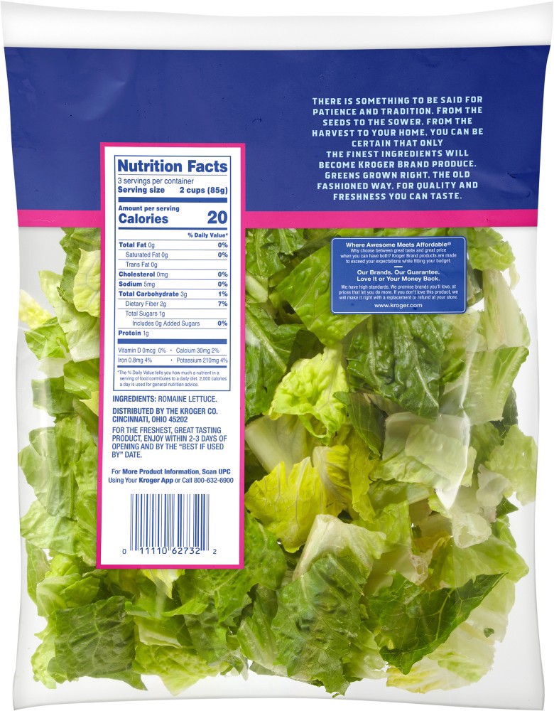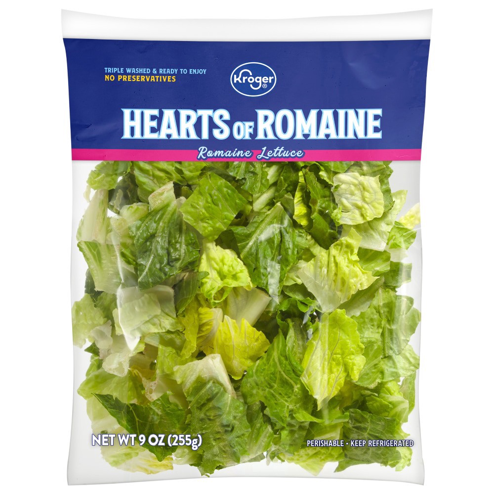 Kroger® Hearts of Romaine Lettuce liven up any dish. Prepped in a jiff, these crisp green leaves are triple washed & ready to enjoy right out of the bag. Bring life to your tacos, add crunch to your s…