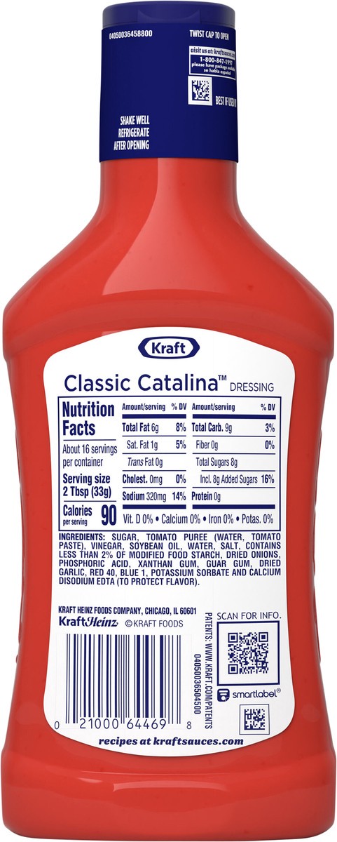 Kraft Classic Catalina Dressing adds tangy, zesty flavor to almost anything. Bursting with tomato puree, vinegar and spices, our family favorite Catalina dressing delivers mouthwatering flavor in ever…