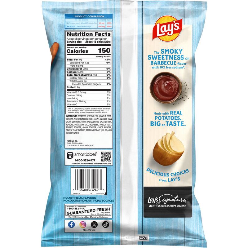 Lay's Lightly Salted Wavy Potato Chips are wavy-cut so they're ready to load up with your favorite dip. From the day-to-day to the instant get-together, enjoy the moment with these deliciously fresh-t…
