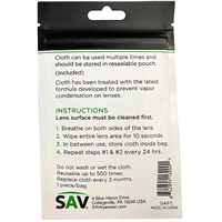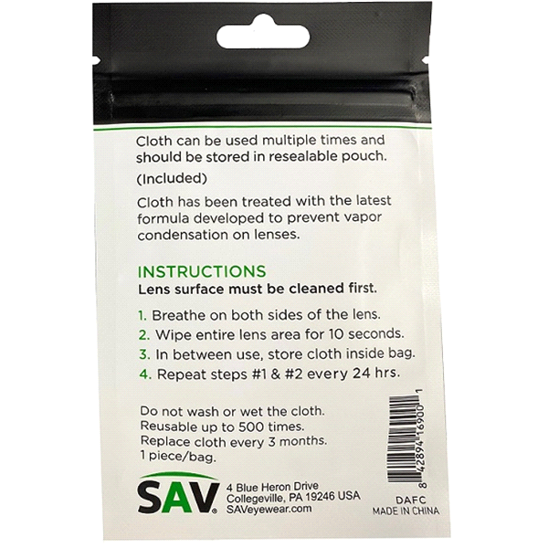 Cloth can be used multiple times and should be stored in resealable pouch. Cloth has been treated iwth the latest formula develped to prevent vapor condensation on lenses.