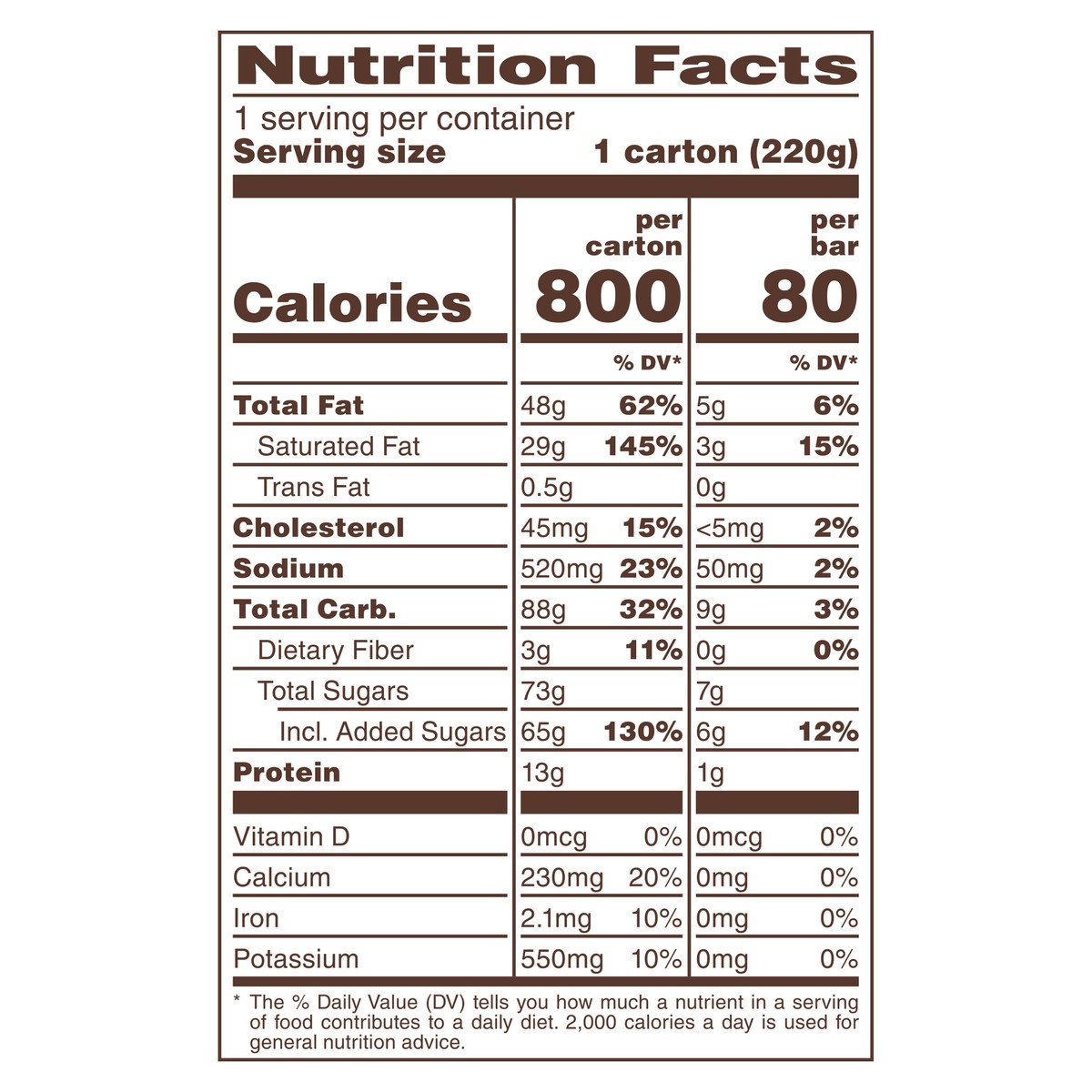 Skim Milk, Sugar, Corn Syrup, Peanuts, Cream, Coconut Oil, Milk, Palm Oil; Less than 2% of: Lactose, Whey, Chocolate, Cocoa, Milkfat, Salt, Soy Lecithin, Mono and Diglycerides, Carob Bean Gum, Carrage…