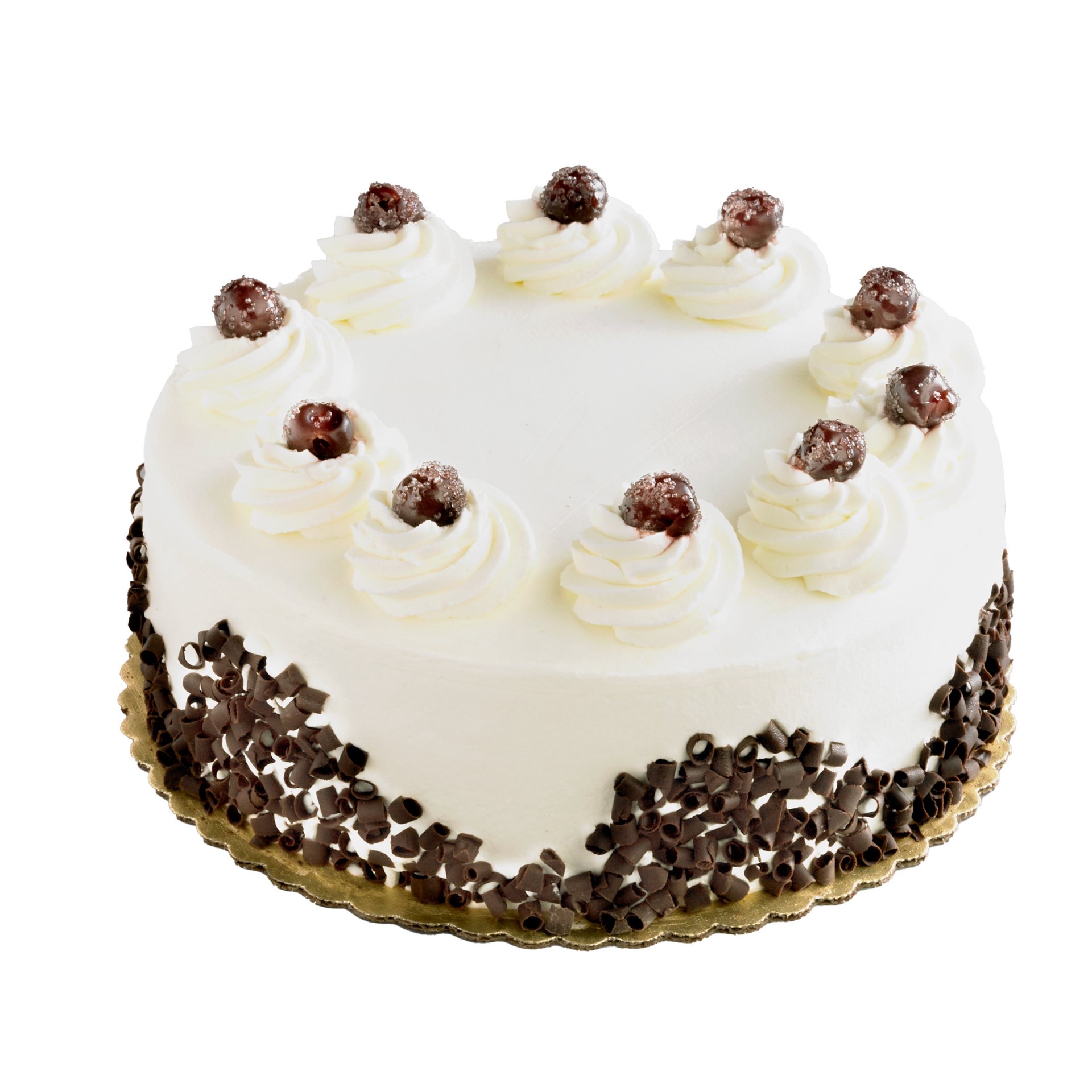 Moist chocolate cake filled with fresh whipped cream and brandied cherries. Decorated with chocolate shavings. Please note that our cakes are produced and sold as pictured. To purchase a cake with any…