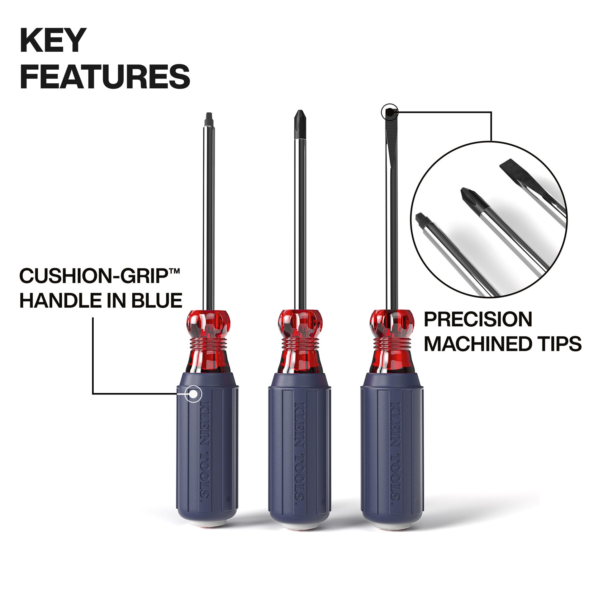 Featuring unique red, white and blue Cushion-Grip™ handles. Made in the USA dome stamps identifing the screwdriver type. Precision machined tips provide a more consistent geometric symmetry to accurat…