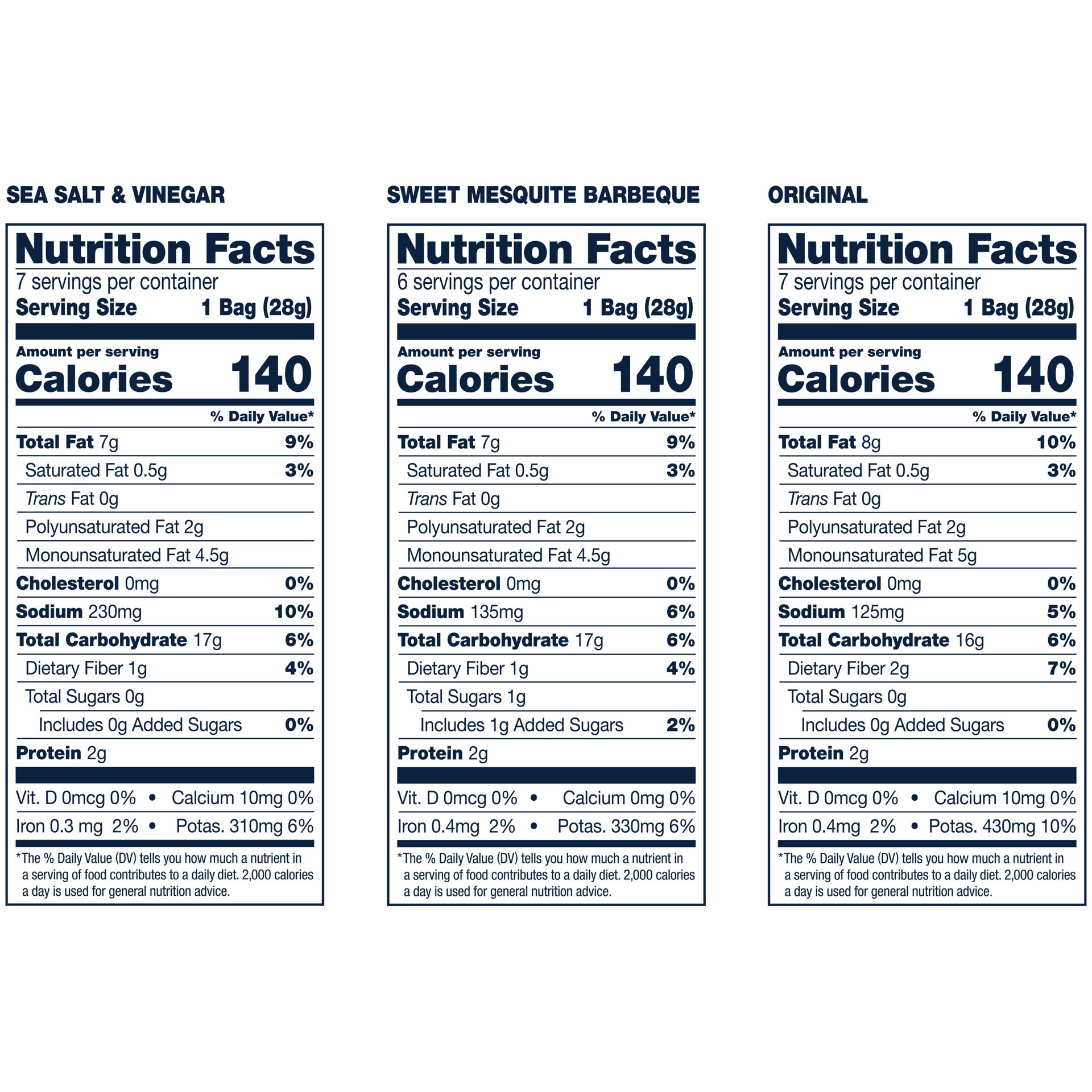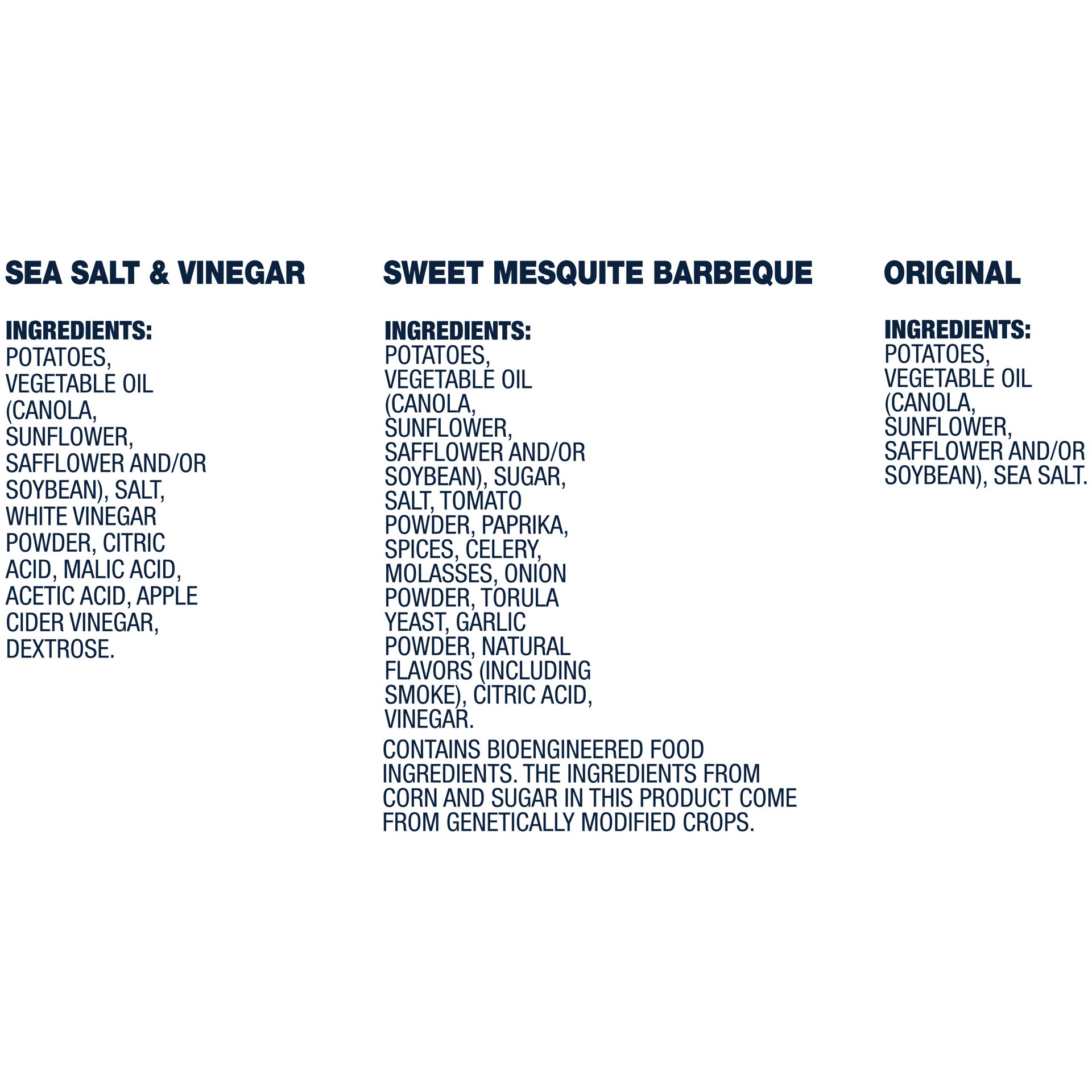 SEA SALT & VINEGAR: INGREDIENTS: POTATOES, VEGETABLE OIL (CANOLA, SUNFLOWER, SAFFLOWER AND/OR SOYBEAN), SALT, WHITE VINEGAR POWDER, CITRIC ACID, MALIC ACID, ACETIC ACID, APPLE CIDER VINEGAR, DEXTROSE.…