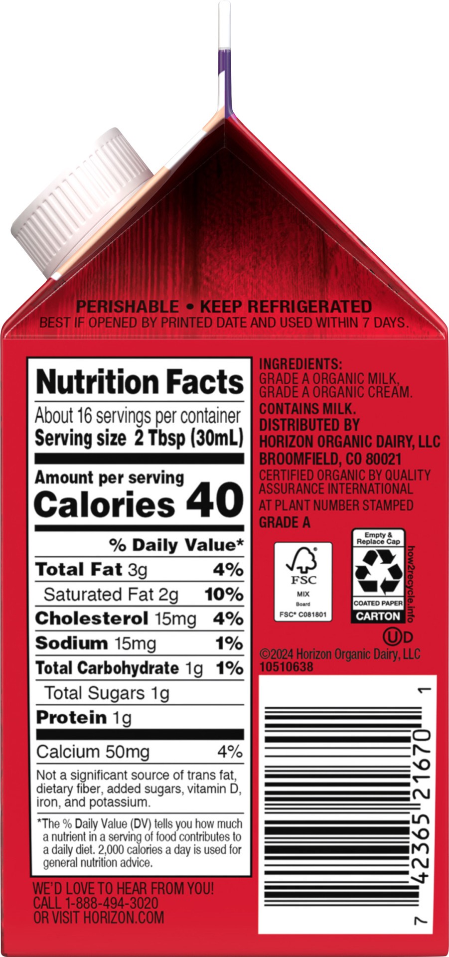 Horizon Organic Half & Half Carton - 1 Pint