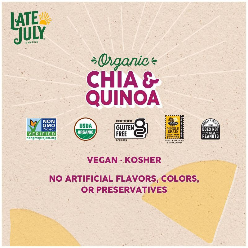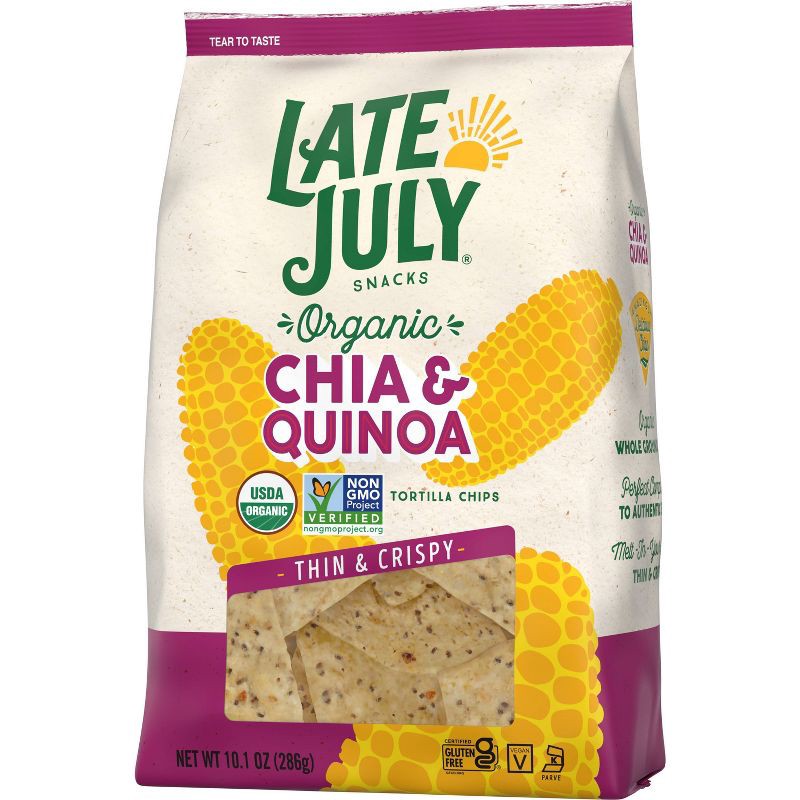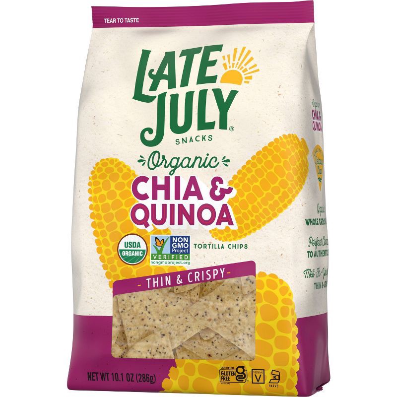 - Includes one (1) 10.1-ounce bag of Late July Chia & Quinoa Organic Tortilla Chips