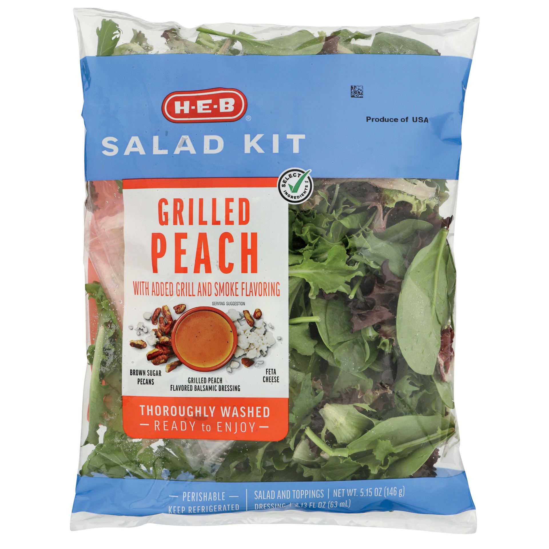 Ready to toss together for a quick snack or light dinner, the H-E-B Grilled Peach Salad Kit is a home run of Texans' favorite flavors. Offering a balance of sweet, tangy, juicy and salty, there's a fr…