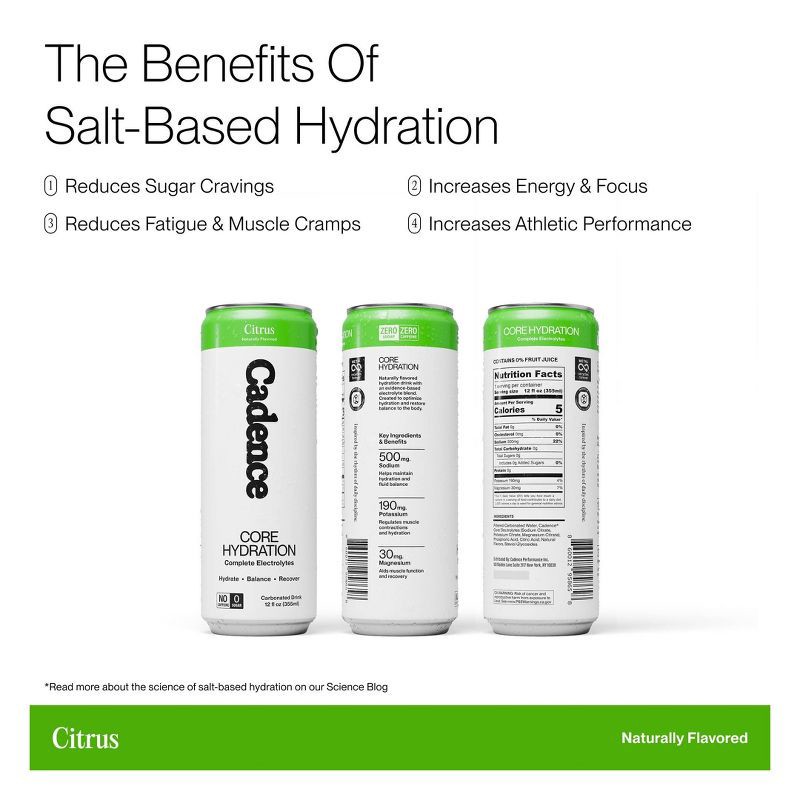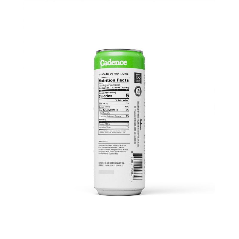 Filtered Carbonated Water, Cadence Core Electrolytes (Sodium Citrate, Potassium Citrate, Magnesium Citrate), Natural Flavors, Phosphoric Acid, Malic Acid, Stevia