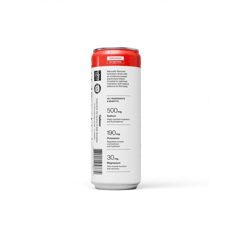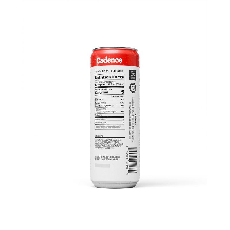 Filtered Carbonated Water, Cadence Core Electrolytes (Sodium Citrate, Potassium Citrate, Magnesium Citrate), Natural Flavors, Phosphoric Acid, Malic Acid, Citric Acid, Steviol Glycosides
