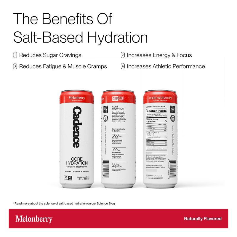 The Cadence Core Hydration Drink in Melonberry combines bold, smooth refreshment with zero sugar electrolyte hydration — no artificial sweeteners, no caffeine, just clean hydration that works. This ca…