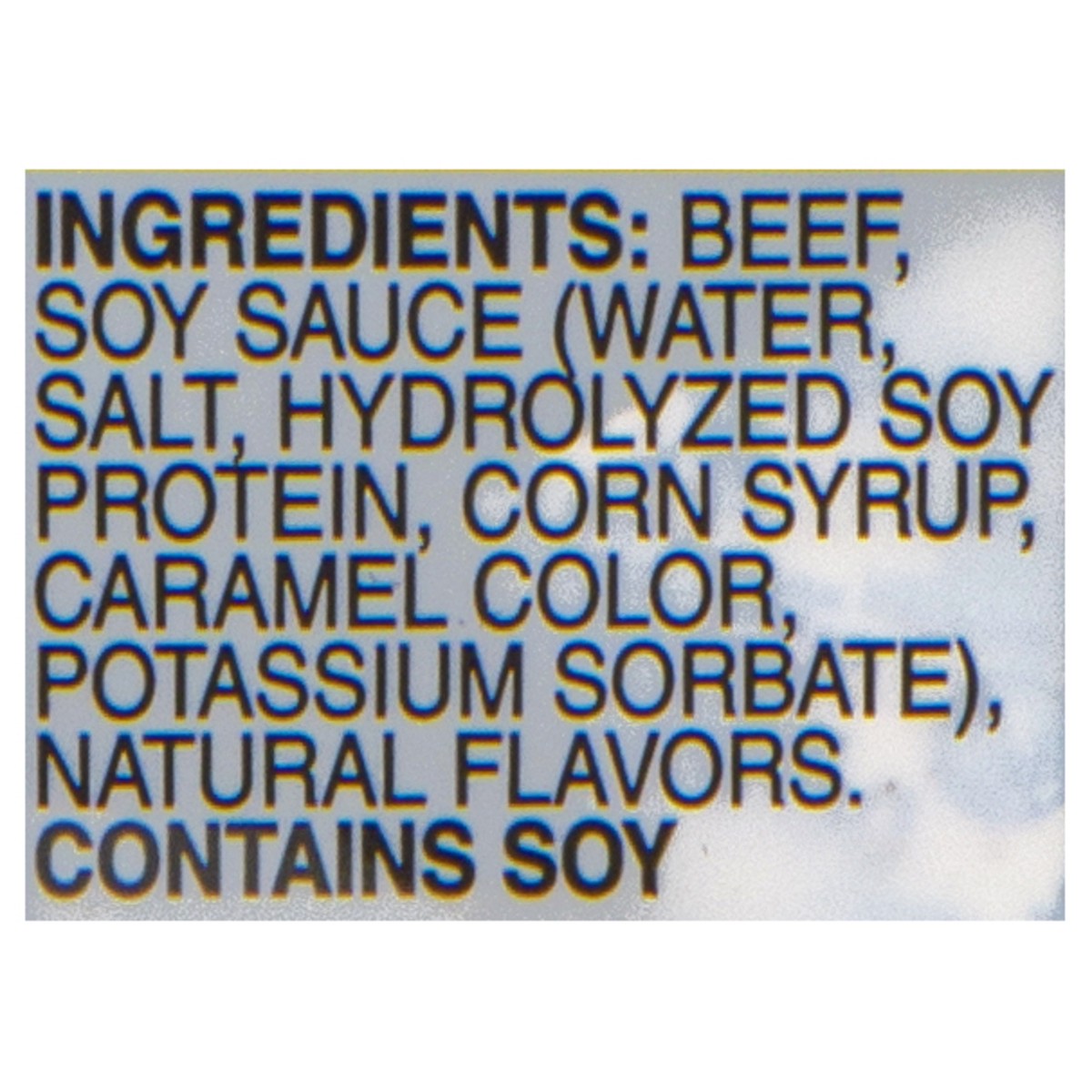 Beef, Soy Sauce (Water, Salt, Hydrolyzed Soy Protein, Corn Syrup, Caramel Color, Potassium Sorbate), Natural Flavors.
