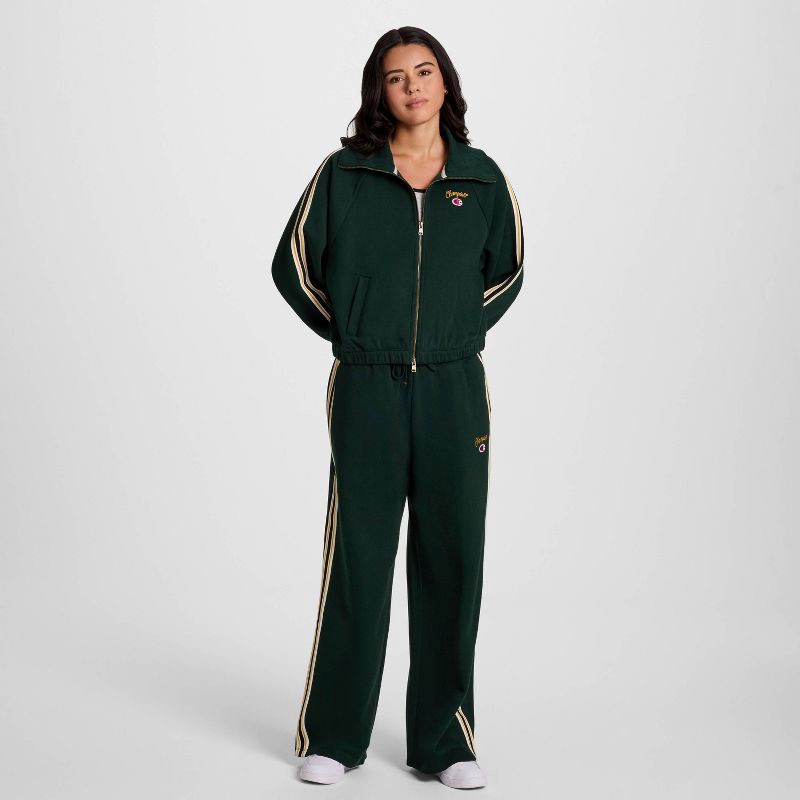 A+ PANTSDesigned in soft, breathable cloud pique fabric, retro details meet modern ease in the women's Champion Scholarship Wide Leg Track Pants. This high-rise silhouette features a wide leg and 23" …