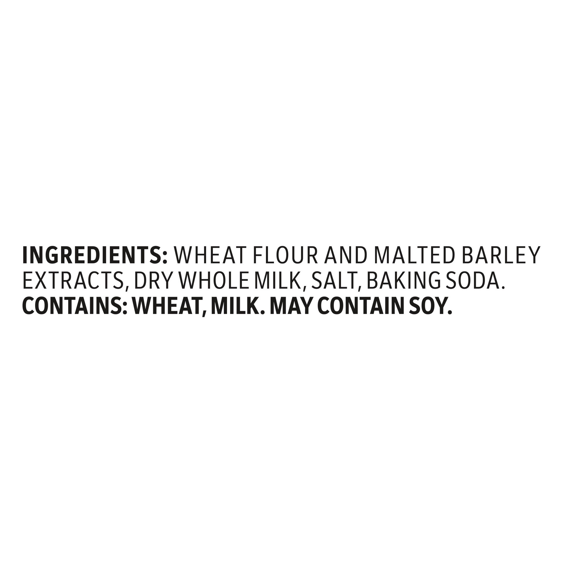 WHEAT FLOUR AND MALTED BARLEY EXTRACTS, DRY WHOLE MILK, SALT, BAKING SODA.