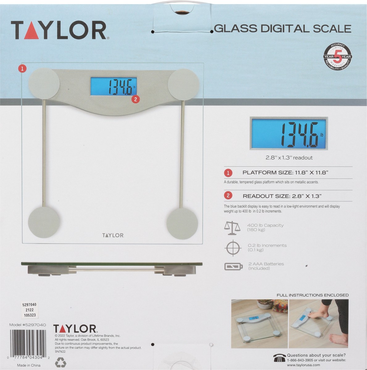 Taylor 400 Lb Capacity Glass Digital Scale 1 ea