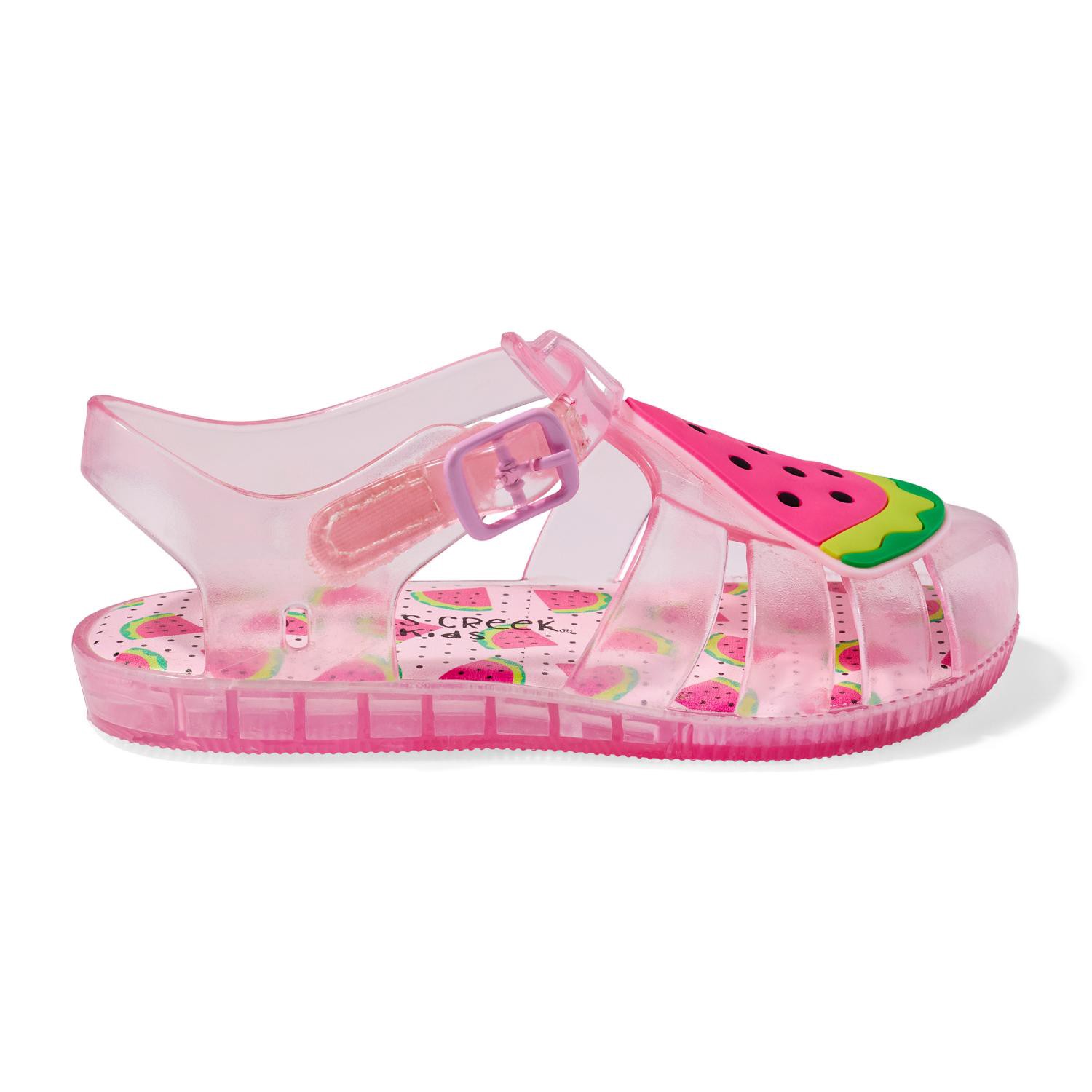 Add a splash of fun to her day with the Falls Creek Kids Feriss R toddler jelly sandal, featuring a translucent pink PVC design and a playful watermelon accent. With a secure buckle strap and cushione…