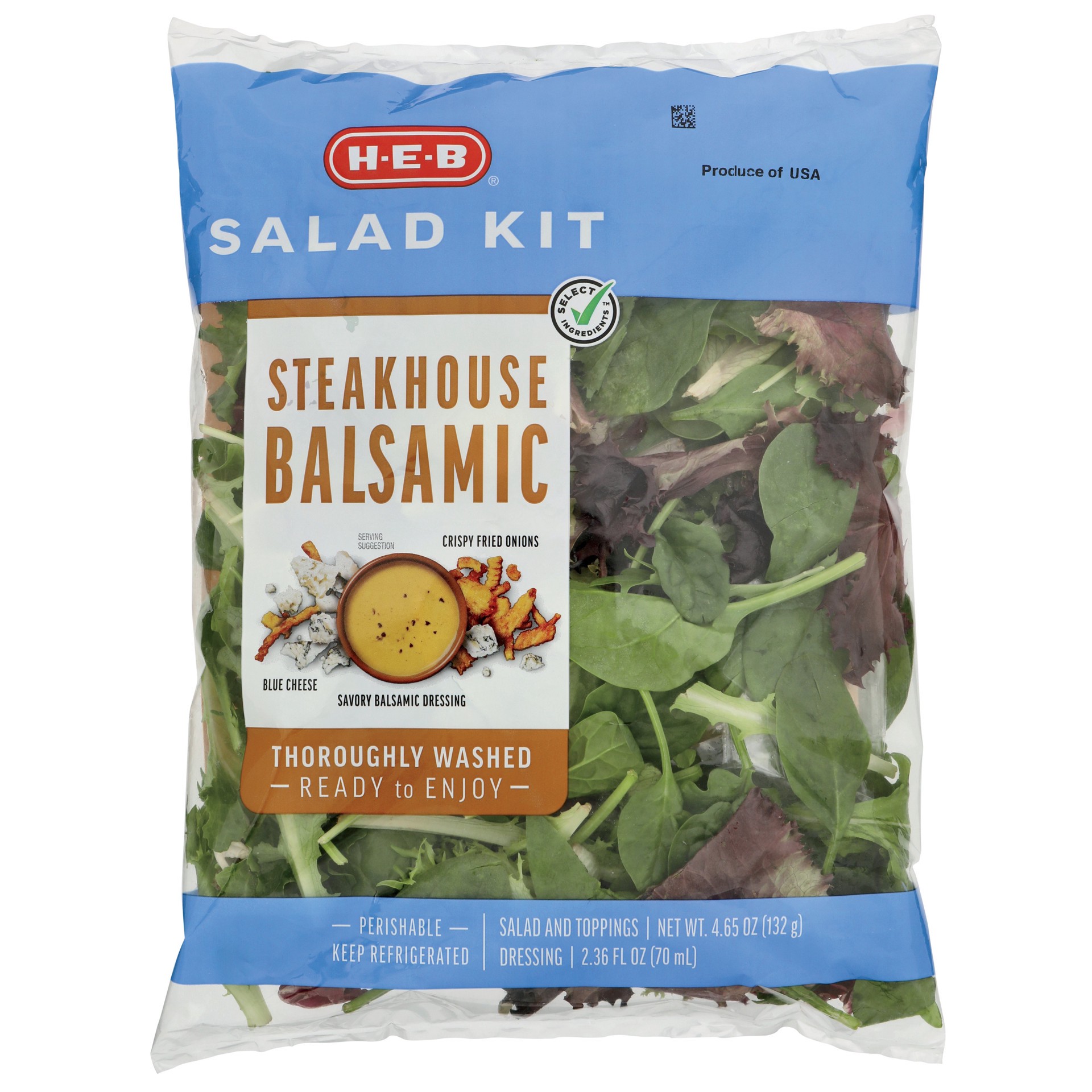Give any dinner that restaurant-quality touch by tossing together this H-E-B Steakhouse Balsamic salad kit. Featuring a vibrant spring mix as the base that's thoroughly washed, the convenient kit also…