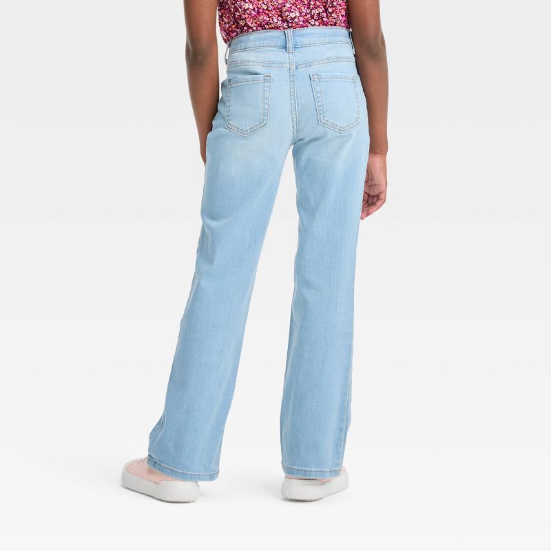 Girls' Mid-Rise Bootcut Jeans - Cat & Jack™ Light Wash 8: Adjustable Waistband, Denim Stretch