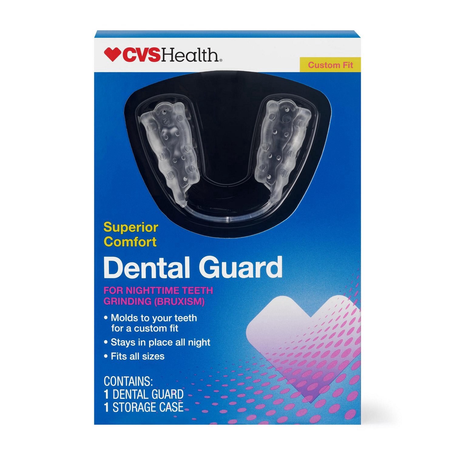 The CVS Health® Superior Comfort Dental Guard is a convenient and cost-effective alternative to costly dental guards provided by dentists. This custom fit dental guard has an ergonomic shape that cust…