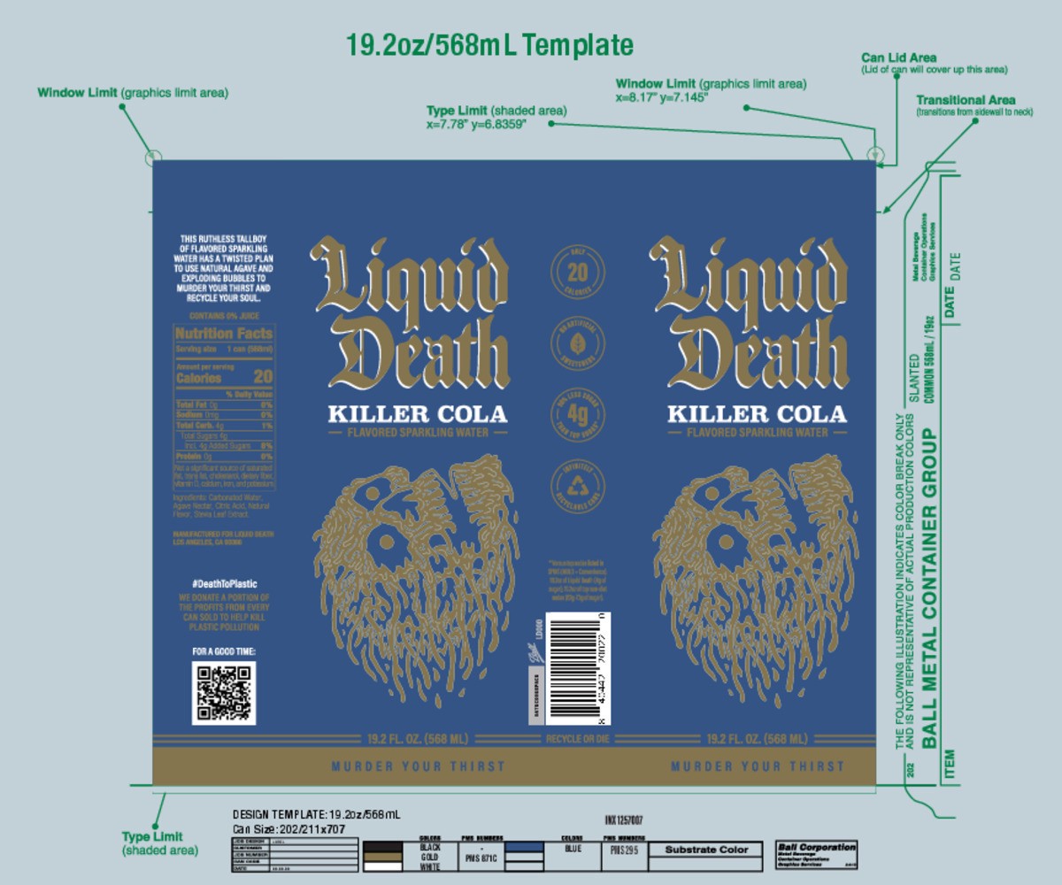 Liquid Death Killer Cola Soda-Flavored Sparkling Water, 19.2 fl oz King Size Can