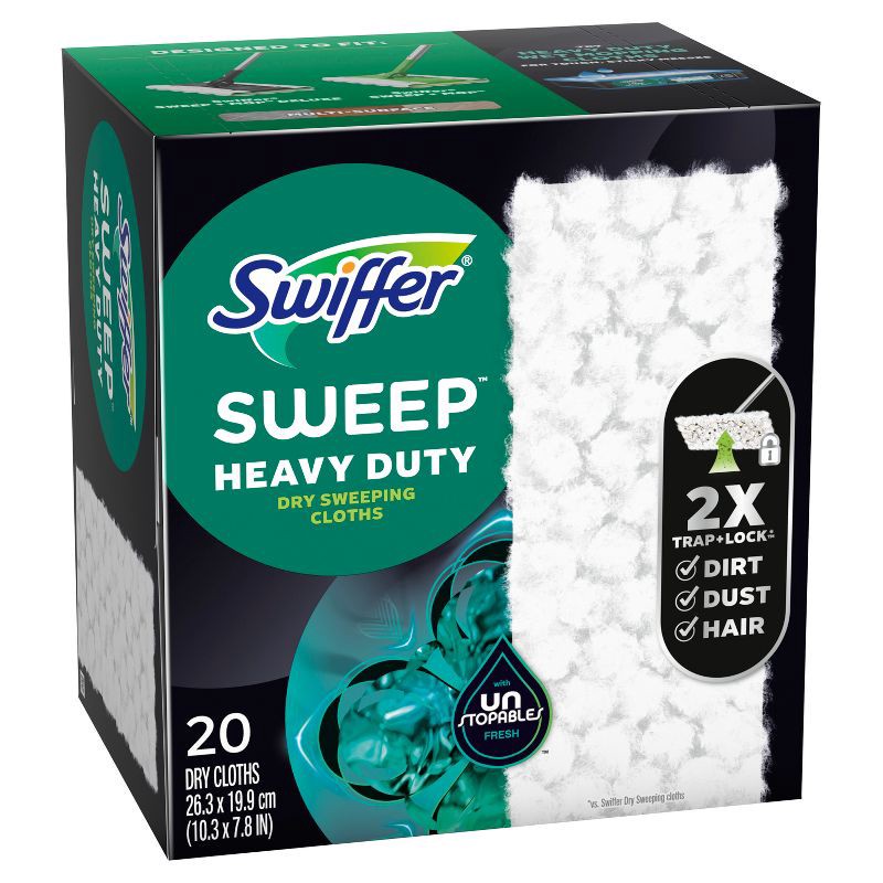 - Enjoy the Lasting Freshness* of Swiffer Heavy Duty Dry Sweeping Cloths with Unstopables Fresh Scent. Swiffer's newest scent is bright and vibrant, finished with airy and crisp undertones.*Leaves behind up to 1 hour of freshness after initial product use