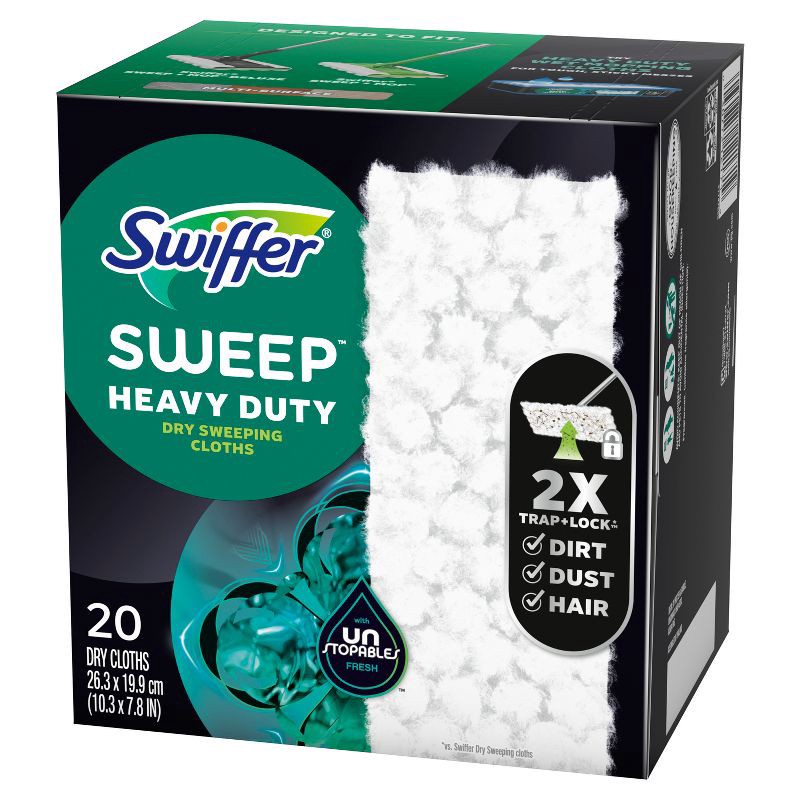 Swiffer Sweeper Heavy Duty Multi-Surface Dry Sweeping Cloths remove up to 95% of allergens* and TRAP + LOCK 2X more dirt, dust, and hair**, allowing you to clean all your hard floor surfaces quickly a…