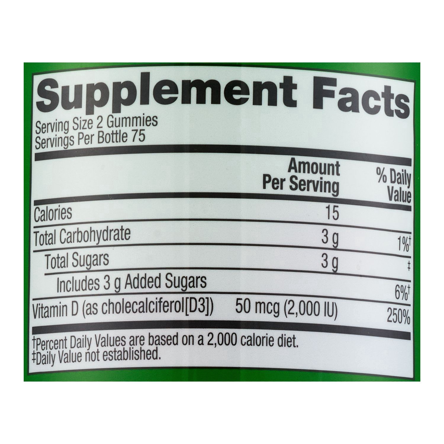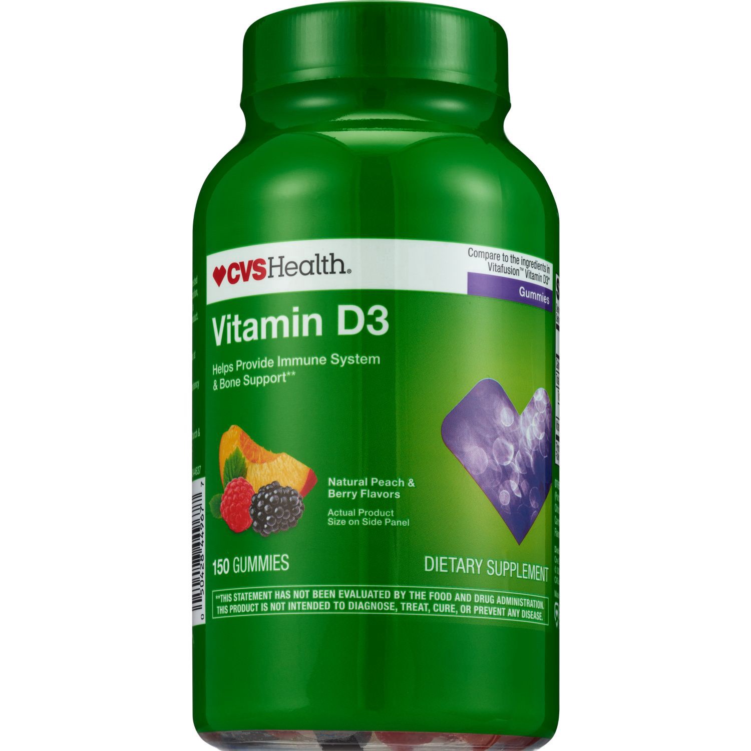 The CVS Vitamin D3 Gummy provides 50 mcg (2,000 IU) of Vitamin D per serving for help in supporting good bone health. This delicious tasting product has natural peach, strawberry, and blackberry flavo…