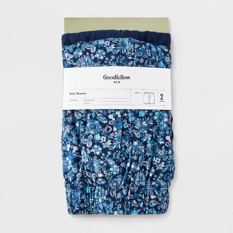 Men's 2pk Boxer Briefs - Goodfellow & Co™ Blue/Floral L