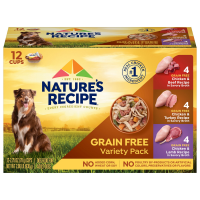 NATURES RECIPE Nature's Recipe Grain Free Chicken & Beef Recipe, Chicken & Turkey Recipe and Chicken & Lamb Recipe in Savory Broth Variety Pack Wet Dog Food, 2.75 oz. Cup, 12 Count