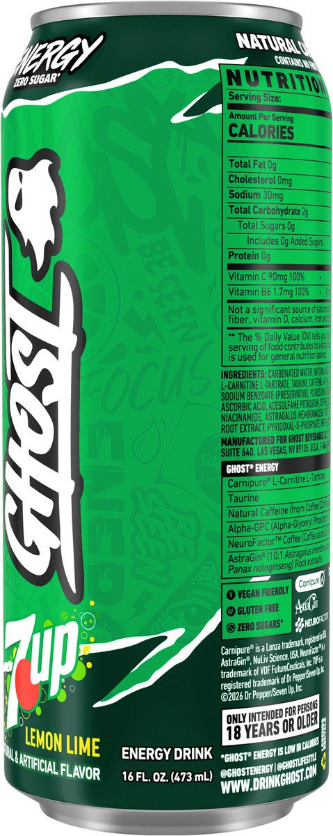 Ghost 7UP Limited Edition Energy Drink, Lemon-Lime, 16 fl oz