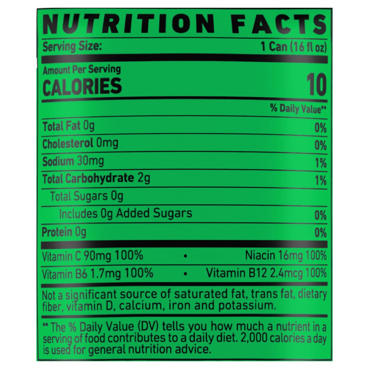 Carbonated Water, Natural and Artificial Flavor, Citric Acid, L-Carnitine L-Tartrate, Taurine, Caffeine, Alpha-Glyceryl Phosphoryl Choline, Sodium Benzoate (Preservative), Potassium Sorbate (Preservat…