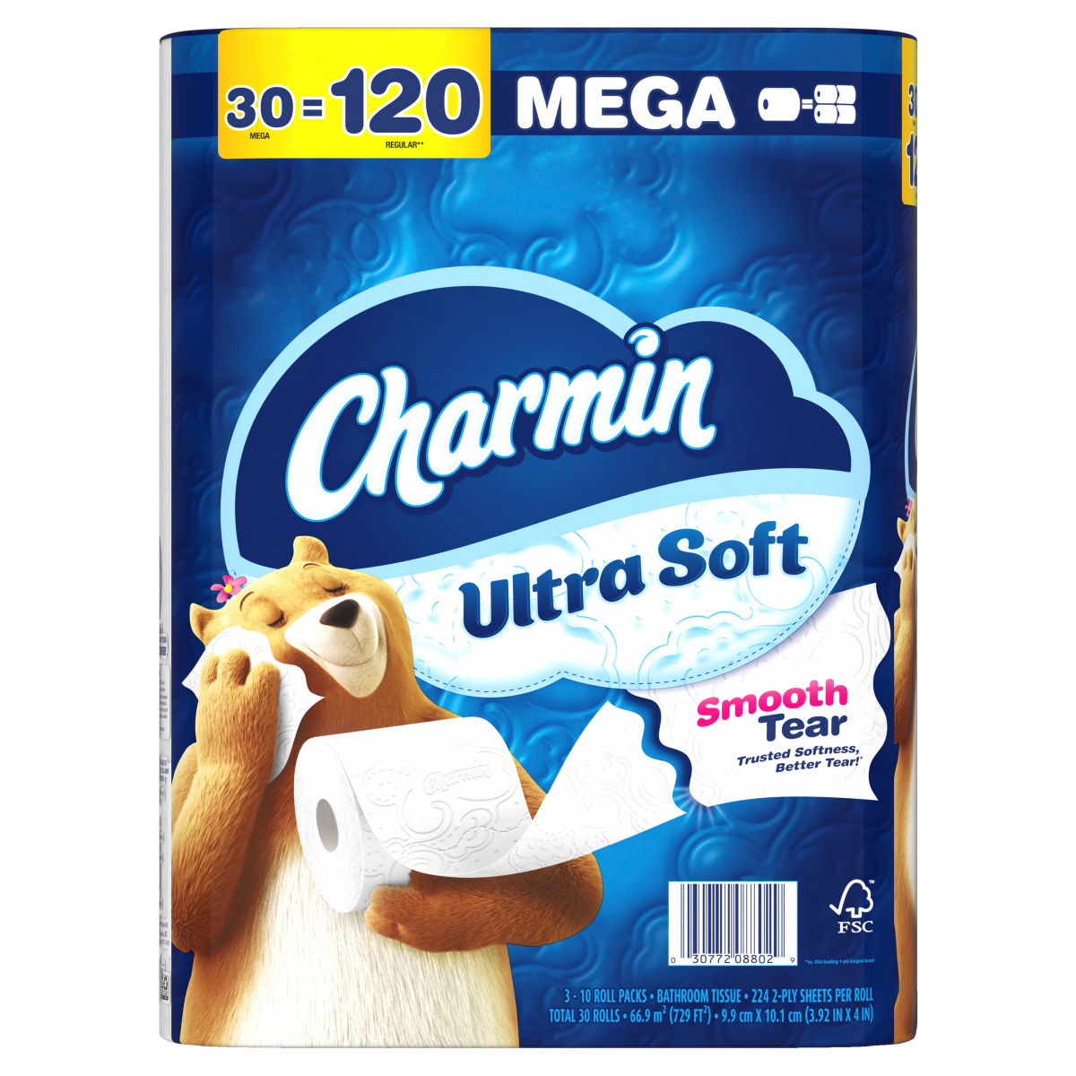 Get irresistible cush for your tush with Charmin Ultra Soft Smooth Tear. Every roll is crafted with wavy perforations that tear better, for a smooth, more enjoyable go. And each sheet of toilet paper …
