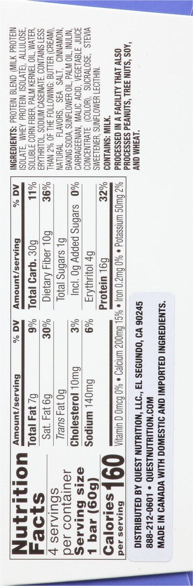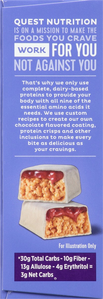 Bite into a crispy and chewy core topped with blueberry flavored topping, wrapped in a coating of white chocolate flavor.QUEST NUTRITION IS ON A MISSION TO MAKE THE FOODS YOU CRAVE WORK FOR YOU NOT AG…