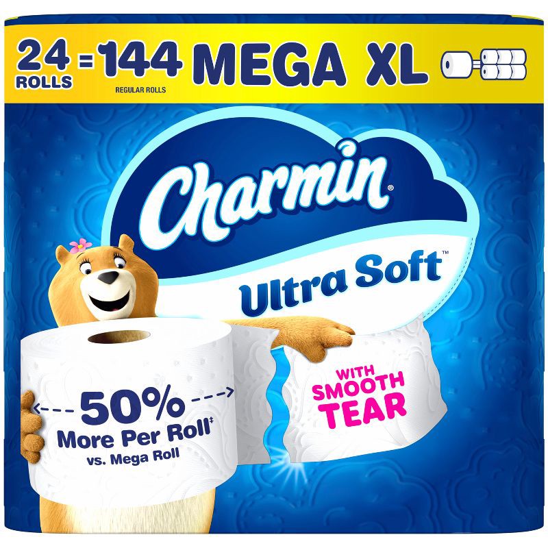 Charmin Ultra Soft Toilet Paper - 24 Mega XL Rolls: No Fragrance Added, Dye-Free, Non-Toxic