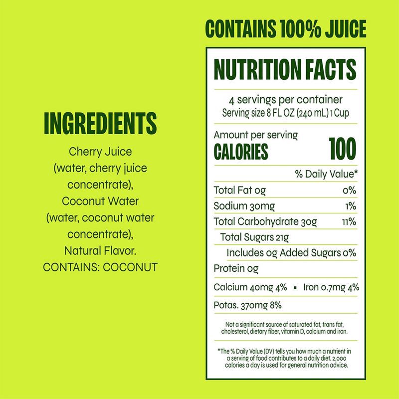 Cherry Juice (Water, Cherry Juice Concentrate), Coconut Water (Water, Coconut Water Concentrate), Natural Flavor